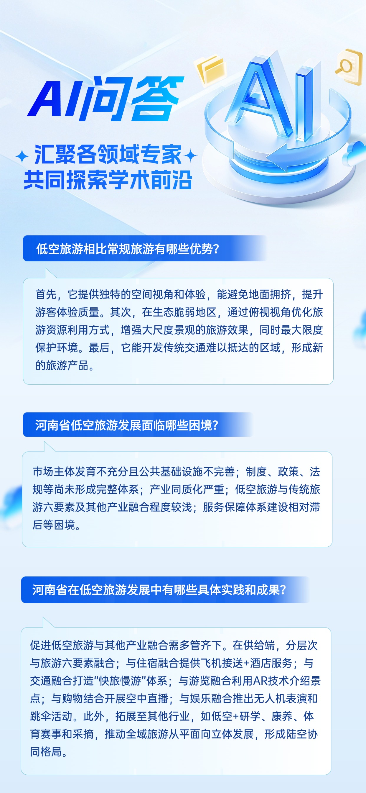 引言:低空旅游作为一种新兴的旅游形态,凭借其独特的空间视角和沉浸式体验,正成为推动旅游业转型升级的重要力量。近年来,河南已建成多个通用机场,开展直升机观光、滑翔伞等特色项目,但面临市场主体不足、政策体系滞后、同质化竞争等问题。本文立足河南省低空旅游发展实际,深入剖析面临的核心困境,并针对性提出破解对策,以推动产业高质量发展。